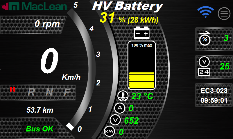 Maclean has introduced new screens in its vehicles, focusing on providing an optimal user experience for technicians. Significant efforts have been made in rebranding the screens and updating the user interface of the human-machine interface (HMI). An external company was contracted to develop the initial designs. Once the basic screen prototypes were created, I collaborated with mechanical and electrical engineers to implement these designs, incorporating their feedback and creating additional screens tailored to their needs. Below are some of the screens I have worked on.